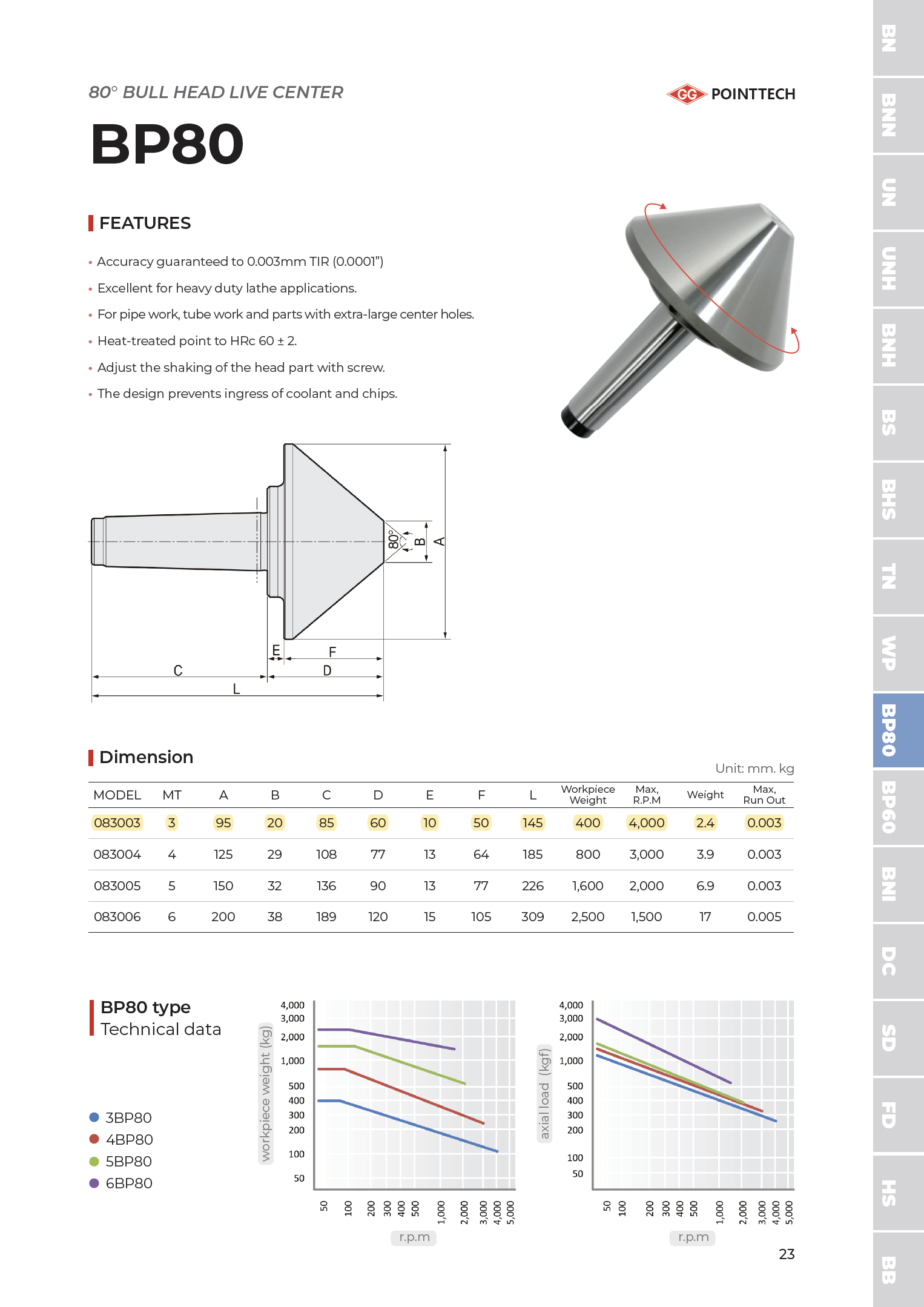 80° Bull Head Live Center MT3 – 3BP80 (#083003)