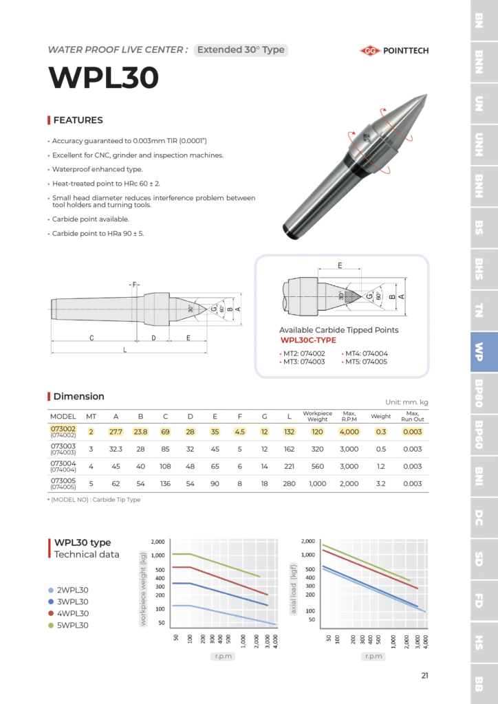 | Product Series | Water Proof Live Centers |